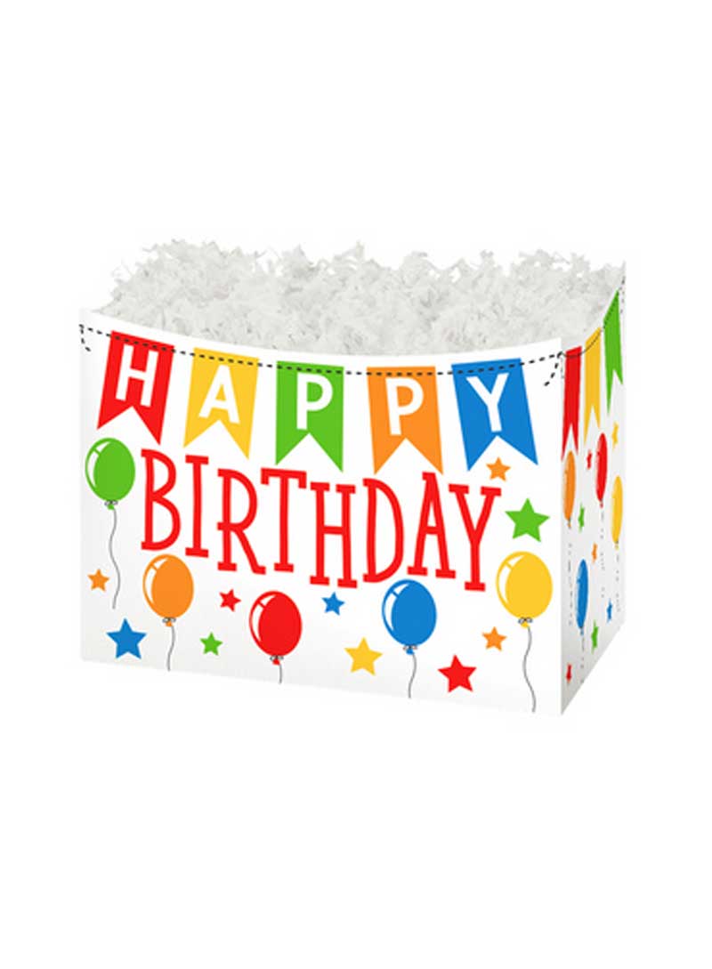 Celebrate the special occasion with our themed gift box filled with savory bruschetta crisps, caramel popcorn, salted caramel brownie brittle, crème brulee gourmet hot chocolate, seasoned pretzels, chocolate salted caramel cookies, maple gourmet hot chocolate, delicious fudge, peach bud hard candies, jellied candy fruit slices, Belgian truffles, Lindor chocolates and birthday candles!